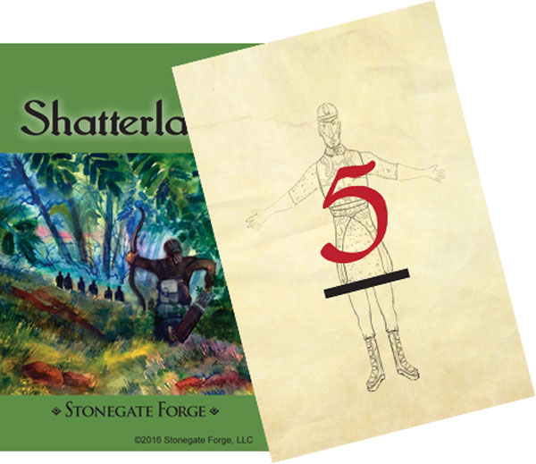 Shatterlands depicts conflicts between small patrols of Dumah Rangers and Rapani warriors in the Banakur Forest. Its scale is small and detailed, modeling the specific actions of individual men and women locked in desperate combat. Each game of Shatterlands is called an Encounter and can be played in around 90 to 120 minutes, resulting in a winner and loser. However, the consequences of these Encounters will reverberate beyond the end of the Encounter, as characters’ abilities change due to wounds they have sustained or experience they have gained.